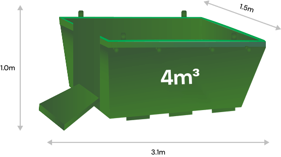 Yes, our 4m skip bins are walk in skip bins. A “walk in skip bin” has a door or opening large enough for people to walk directly inside. This makes it easier to load with bulky or heavy items without having to lift them over the sides, because it allows you to “walk in” to load your waste easily.